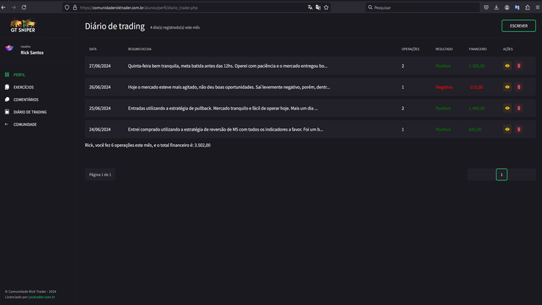 Quem já é aluno da Comunidade Trader GT Sniper, sabe que eu não escondo nada. Tudo que eu faço no meu dia a dia está detalhadamente explicado para vocÊ apenas "Copiar e colar".